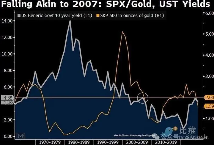 在其最新观点中,McGlone 反复强调一个概念:Inflation / Deflation Inflection(通胀向通缩切换的拐点)。在他看来,全球市场正站在这样一个关键节点附近。随着主要经济体通胀见顶、增长动能放缓,资产定价逻辑正在从「对抗通胀」转向应对「通胀后的通缩」——即通胀周期结束后价格全面下跌的阶段。他写道:「比特币的下跌走势,可能重现 2007 年股市面对美联储政策时的情形。」