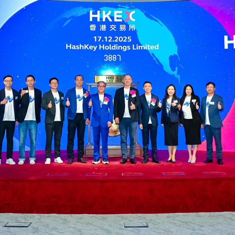 香港,2025 年 12 月 17 日 —— 亚洲成熟的综合性数字资产公司 HashKey Holdings Limited(「HashKey」或「公司」,股票代号:3887.HK)今日正式在香港联合交易所主板挂牌上市,成为亚洲数字资产领域在港公开发行的第一股。此次上市标志着公司迈入全新发展阶段,为全球布局与长期战略奠定了更加坚实的基础。