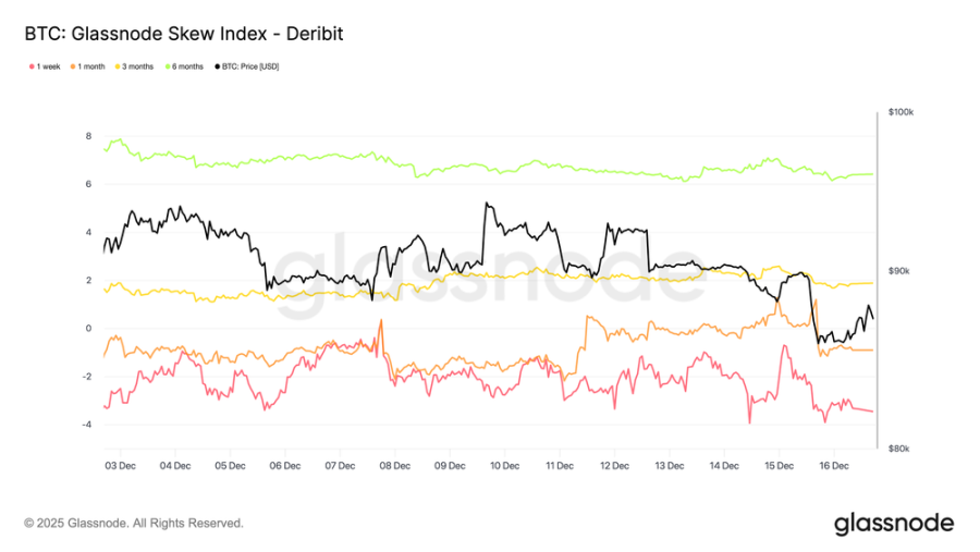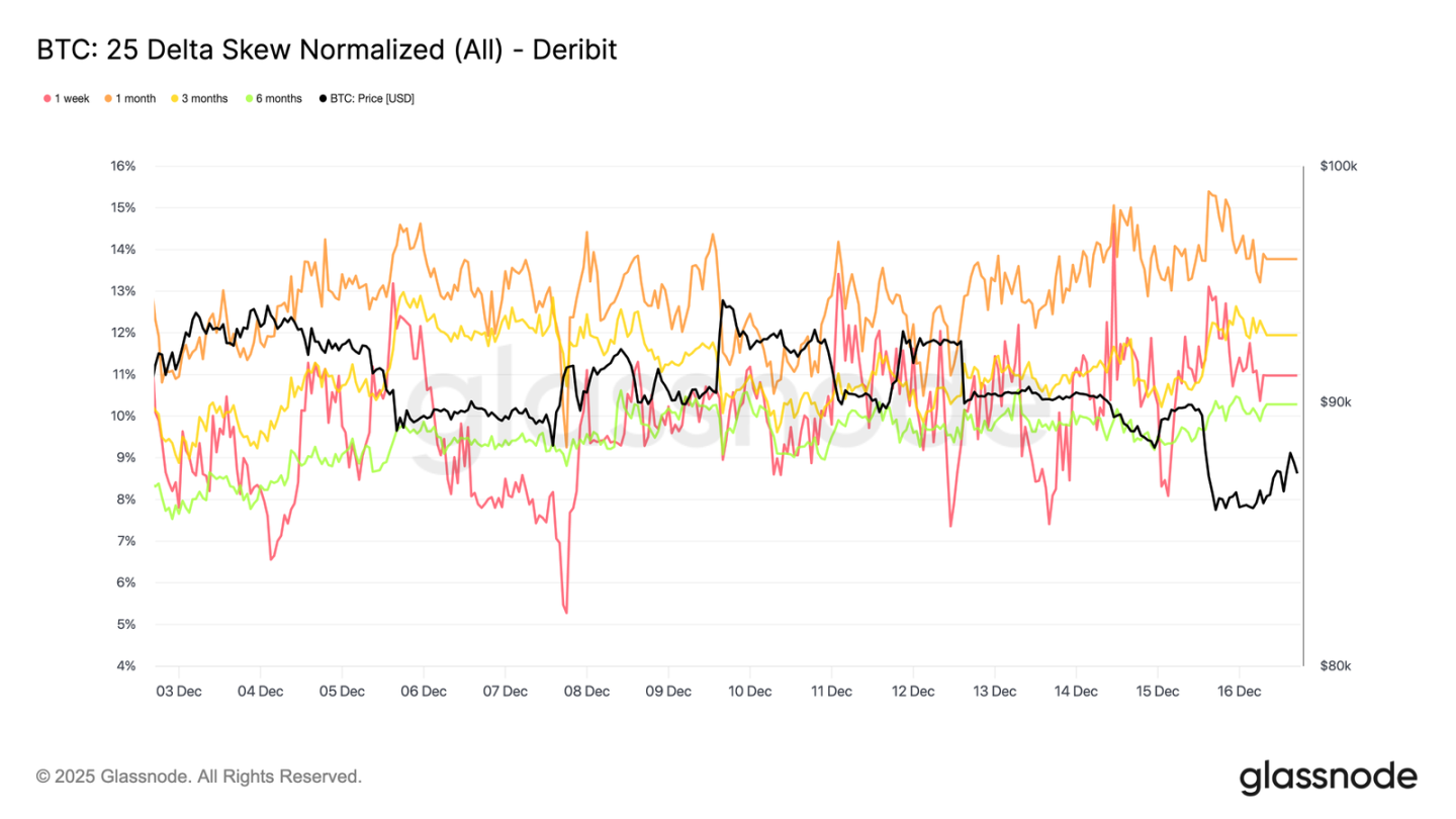 在前端波动率下降的背景下,这种稳定性表明市场对剧烈下跌的担忧有所缓解,但并未完全消失。市场从防御姿态中后退一步,但尚未转向激进看多。