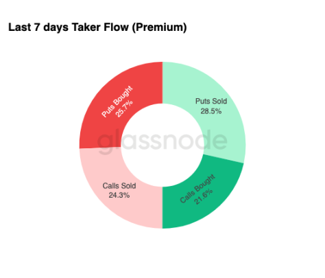 与稳定的偏斜结构一致,期权交易流揭示了实际操作。过去一周,主动交易流以卖出看跌期权为主,同时也有买入看跌期权。这表明在维持一定对冲的同时,交易员积极通过卖出期权赚取权利金。