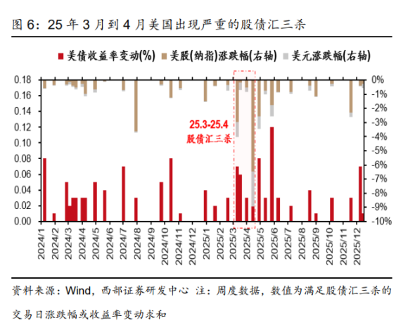 情景二: 如果资金恐慌真的诱发了全球流动性冲击,投资者需要密切跟踪一个关键信号——美国市场是否连续出现 2-3 次「股债汇三杀」(即股市、债市、汇市同步下跌)。报告指出,类似今年 4 月初的情况一旦重演,则表明市场出现流动性冲击的概率明显增强。