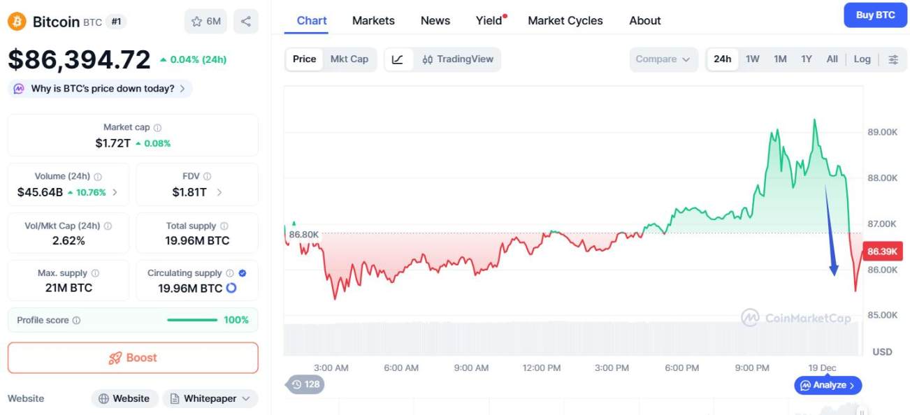 CPI 公布后,美元和美债收益率刷新日低,加密货币刷新日高、但美股盘中转跌。比特币逼近 9 万美元后一度较日高跌超 4%。