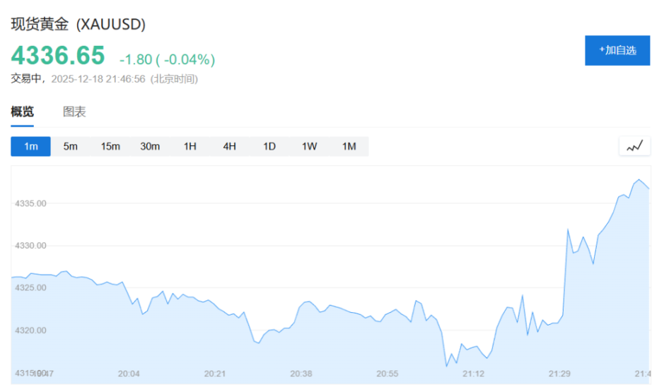 与此同时,黄金价格维持在纪录高位附近,现货钯金突破 1700 美元 / 盎司,为 2023 年 2 月以来首次,日内涨超 3%。油价则在特朗普发表未加剧地缘政治紧张局势的讲话后回吐涨幅。