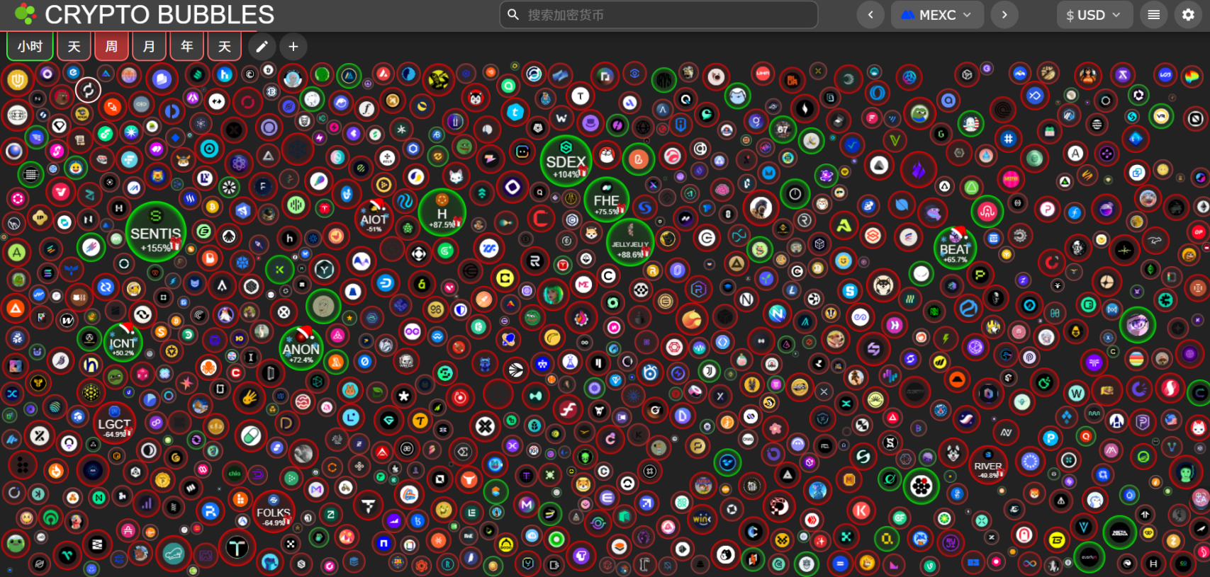 本周山寨市场迎来单边下跌行情。前期热点炒作动能耗尽,缺乏新热点带动市场情绪,叠加大盘波动影响,投资者落袋为安意愿强烈。盘面表现上,仅 Swarm、ACT 等个别小市值代币逆势上涨,其余币种悉数下跌。当前市场进入退潮阶段,适当空仓休息或轻仓观望为最优策略。
