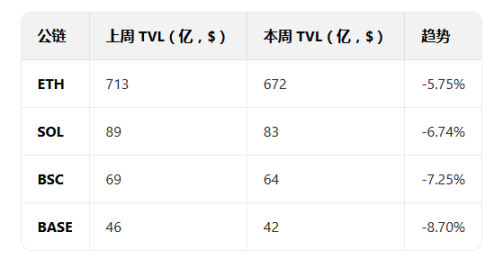 本周四大公链 TVL 悉数下降,链上活跃度随市场情绪回落。