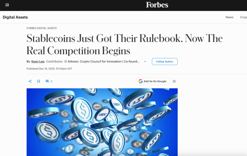 近日,福布斯就美国稳定币监管框架的最新进展发布深度文章,重点援引 CertiK 发布的《2025 Skynet 美国数字资产政策报告》。