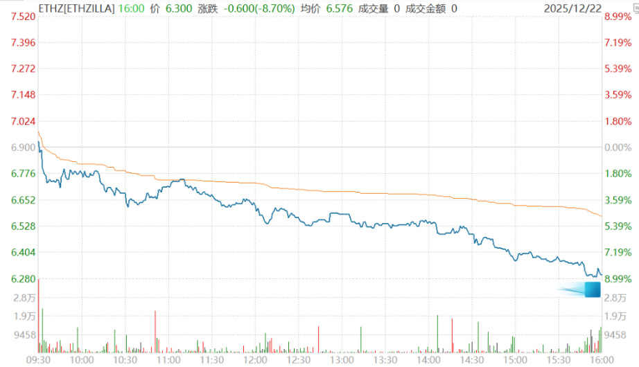 ETHZilla 盘中一度下跌 9%