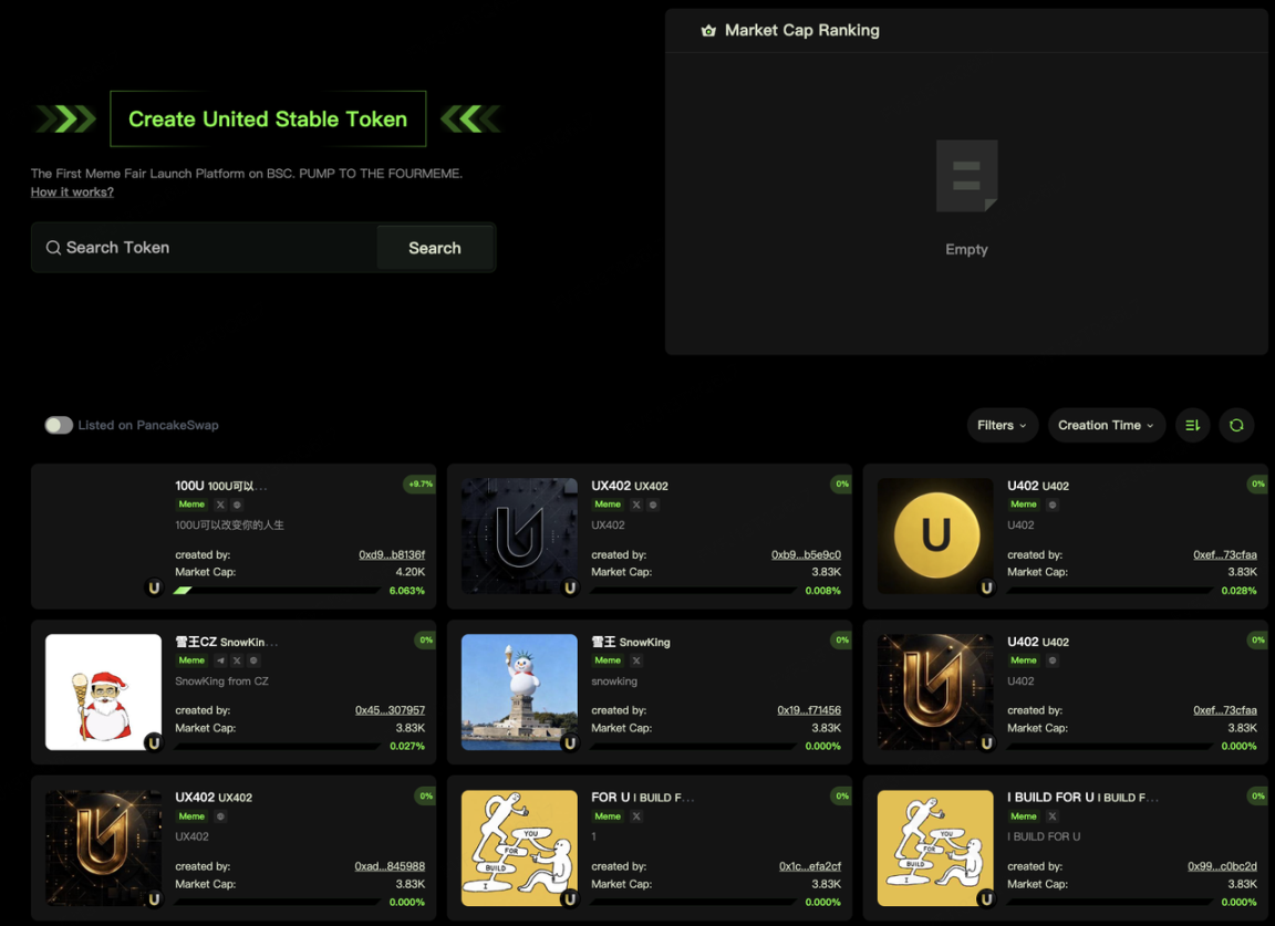 数据来源:https://four.meme/u & https://coinmarketcap.com/currencies/united-stables/