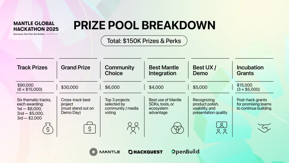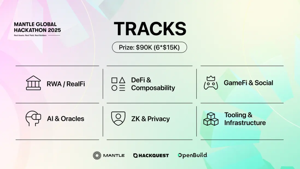 RWA/RealFi 作为优先赛道,直接呼应了 Mantle 生态将传统金融资产引入链上的战略规划。参赛者可以探索证券化代币、合规 DeFi 协议等创新方向。