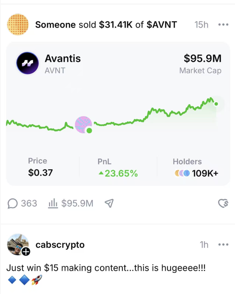 在交易板块的主 Feed 中,创作者开启收益的内容帖下方会显示实时行情按钮,一键跳转至交易页面。