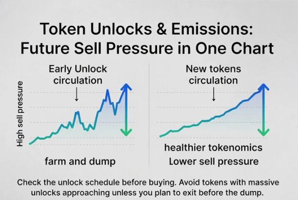 解锁和排放意味着新代币进入流通市场。大规模解锁通常伴随着自动抛售:团队套现、VC 减持、奖励释放导致供应激增。