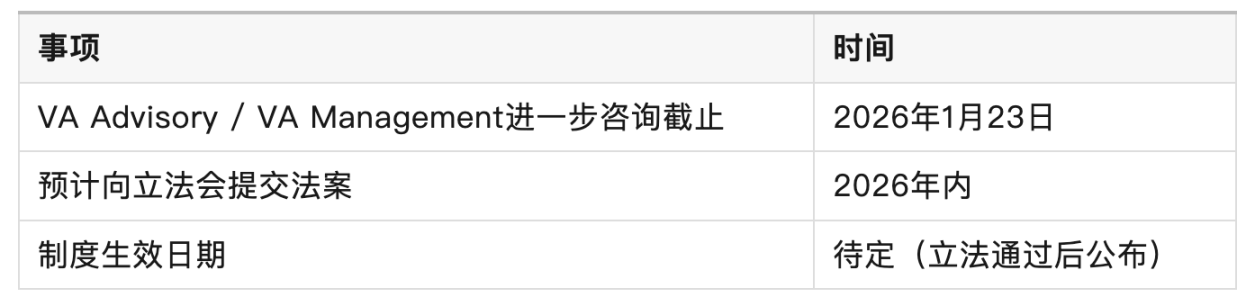 新增独立的 VA Advisory 牌照,是为了填补这一监管空白,确保「相同活动、相同风险、相同规管」原则的贯彻。