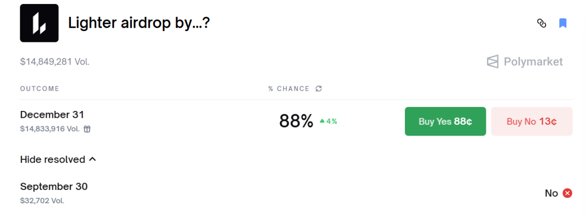 Wintermute 场外交易主管 Jake O 发文表示,「Lighter TGE 将成为衡量当前市场风险偏好的重要指标,而市场如何消化首批释放的 25% 代币供应,也将很大程度上反映整体市场情绪的强弱。」