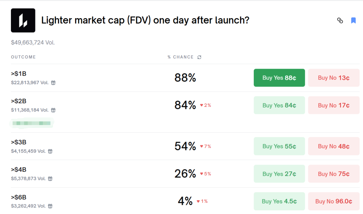Polymarket 上数据显示其 FDV 超 20 亿美元概率 84%。