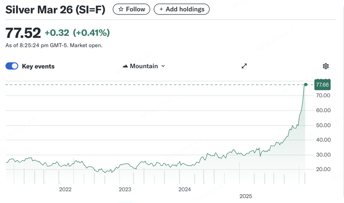 本周全球市场在 2025 年的尾声中呈现出明显的“脱虚向实”特征,贵金属板块的疯狂与加密市场的相对低迷形成了鲜明对比。在地缘政治紧张局势升级和美元走弱的推动下,贵金属市场上演了史诗般的“逼空”行情。现货黄金突破 4500 美元 / 盎司大关,白银更是录得惊人的 167% 年内涨幅,盘中触及 79 美元 / 盎司的历史峰值。透过表象看本质,这更多是市场对以美元为首的法币信用体系长期贬值的悲观定价,从而推动了实物资产的重估。不过,当前走势过于凌厉,市场 FOMO 情绪叠加短期超买迹象明显,12 月 29 日现货白银出现的跳水行情便是风险的预演。