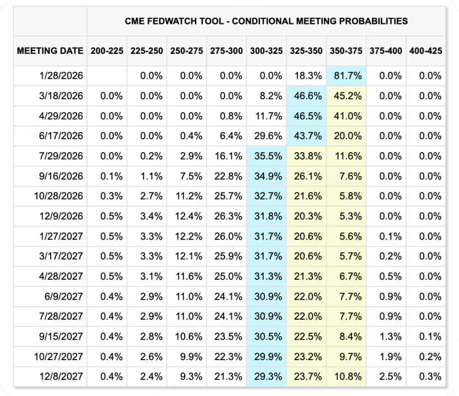展望 2026 年,流动性环境的核心矛盾在于“市场保守定价”与“激进人事变动”之间的巨大的预期差。根据最新的 CME FedWatch Tool 数据,市场目前对 2026 年的降息路径定价相对克制。数据表明,2026 年 1 月维持当前水平不变的概率高达 82.3%。市场预期的主要降息窗口集中在第二季度,而且降息路径也较为温和。然而,2026 年 FOMC 票委的构成可能因“居住地新规”而发生剧烈变动,一些鹰派的人士可能有被取消资格的可能,导致实际政策远比 CME 预测的宽松。如果 FOMC 新一届整体偏鸽,实际降息幅度可能扩大至 4 次甚至更多,这将为风险资产提供远超预期的流动性溢价。