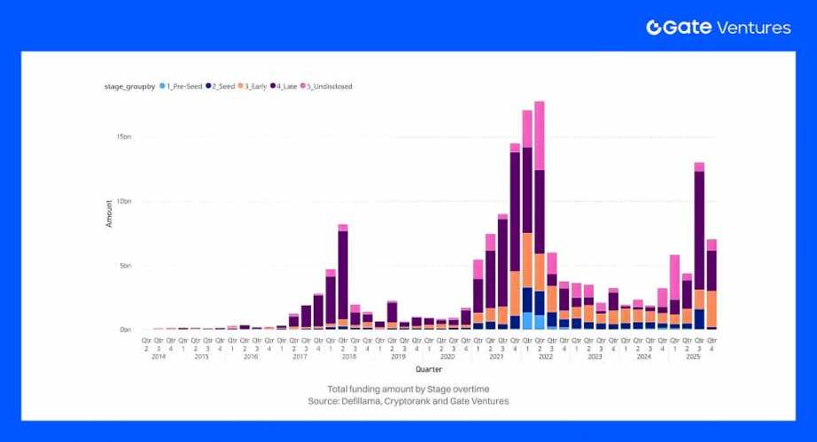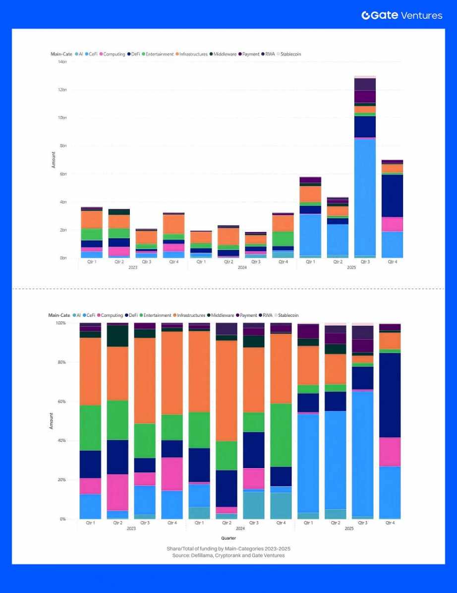 By 2026, late-stage activity will cluster around CeDeFi, RWA, stablecoins/payments, and regulated information markets, while early-stage funding continues seeding AI, ZK, DePIN, and next-gen infra.