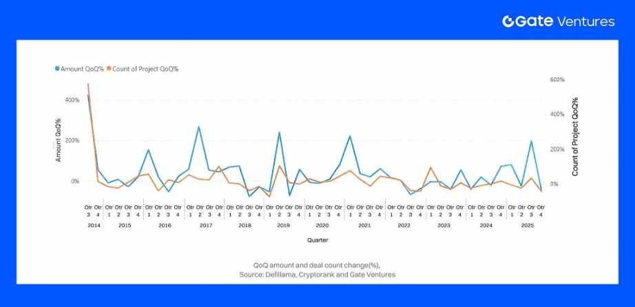 Paradigm, a16z crypto, Polychain, Gate Ventures, and Dragonfly continued to anchor L1/L2, ZK, data availability, and interop investments. After quieter deployment in 2023–2024, they returned in 2025 with high-conviction infra bets — advanced ZK systems, AI-driven protocols, interoperability layers, and regulated synthetic/prediction markets — sectors where technical and regulatory complexity create strong moats.
