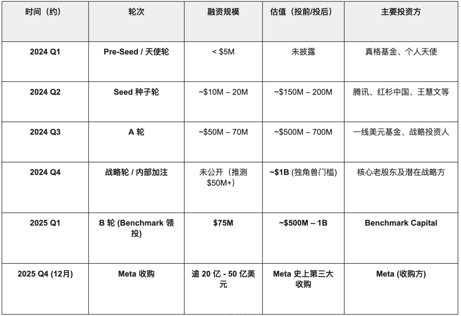 中国团队 + 新加坡实体 + 美元资本提供了一条在中美摩擦下求生的现实路径,但并非万能钥匙。执行成功,仍需 Manus、DeepSeek 级别的顶级技术团队——能快速迭代出超越竞品的 Agent,同时跑通商业化。更需 Meta 这样既有巨额现金、又对 AI 叙事焦虑的买家。