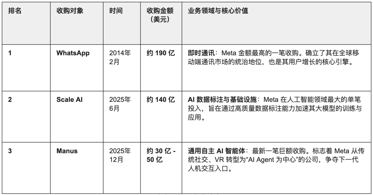 Meta 史上三笔最大收购案
