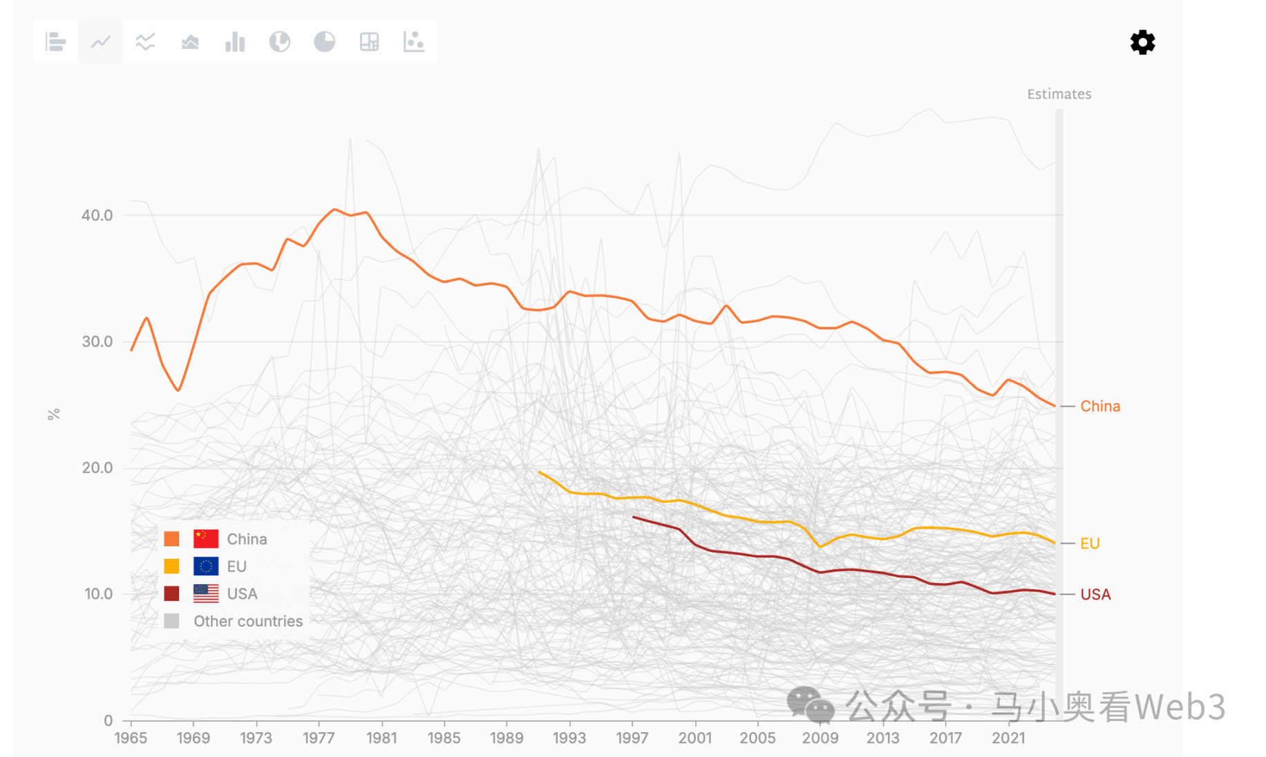 当然汇率风险也在于如何解决与欧盟的政治摩擦。由于欧盟各国大多数为已开发国家,且制造业在 GDP 占比远比美国来的更高(欧洲制造业占 GDP 比例达到 15%,而美国则为不到 10%),这就意味着欧洲普通民众的主要收入中工资收入,相对于投资带来的资本利得的占比更高。在过去一段时间內,欧盟由于失去了俄罗斯廉价的能源供给,导致成本攀升,制造业受到了不小的影响,特别是由于中国的产业升级,对欧洲的支柱型产业之一,汽车产品产生了极大冲击。这就意味着欧洲整体产业利润的下降,企业利润的下降带来的两个影响是政府税收的下降,以及工资增速的放缓。前者也会通过财政吃紧,进而影响欧洲原有的高福利的维持。这两者都将使得居民的财富效应降低,进而影响消费。而投资方面,由于缺乏 AI 方面的优质标的,欧洲失去了在 AI 领域的资本竞争能力,欧洲资本大都流出到美国的 AI 市场中,以争取更高的预期回报。因此投资方面也不容乐观。所以在这个基础上,净出口对于经济的影响就会被放大,因此欧洲各国政府对贸易逆差的态度也更为激烈。