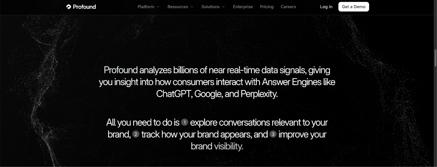 GEO 的绝对龙头企业是成立于美国的 Profound,这家在 2024 年正式上线产品的 GEO 平台已经获得了来自红杉资本等顶级 VC 的投资,创始人 James Cadwallader 曾创办数据驱动的网红营销机构 Kyra。Profound 的客户包括了国银行、DocuSign、Indeed 等。
