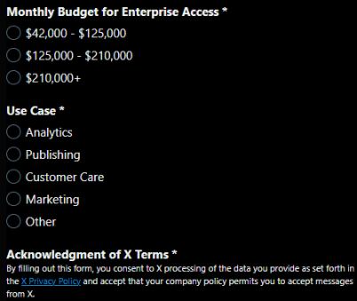Enterprise Access Form | 图源:X 文档