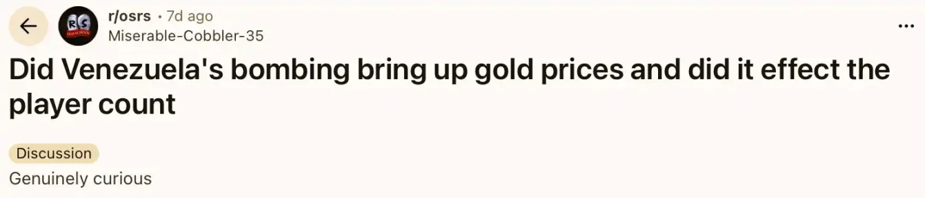 「美国对委内瑞拉的袭击会导致 RuneScape 的金价上涨和玩家人数变化吗?」