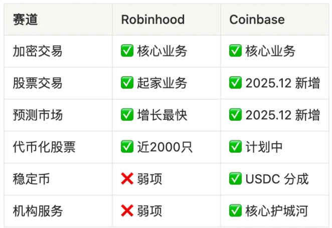 半年过去了,战况如何?Robinhood 不仅在代币化股票上越跑越快,还杀进了预测市场,成为该业务增长最快的玩家;Coinbase 也不甘示弱,在 2025 年底连发大招,宣布进军股票交易和预测市场,誓要做「Everything Exchange」。