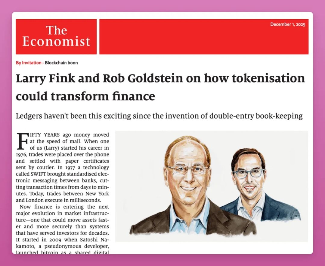 「每一只股票、每一种债券、每一只基金 —— 所有资产都可以被代币化。若这一目标实现,将彻底改变投资行业。」