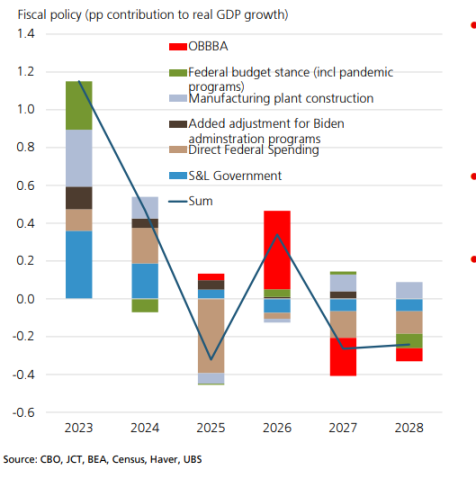OBBBA 将在 2026 年提供阶段性支撑。瑞银预计,约 550 亿美元的退税将在二季度集中释放,对当季消费形成明显提振。