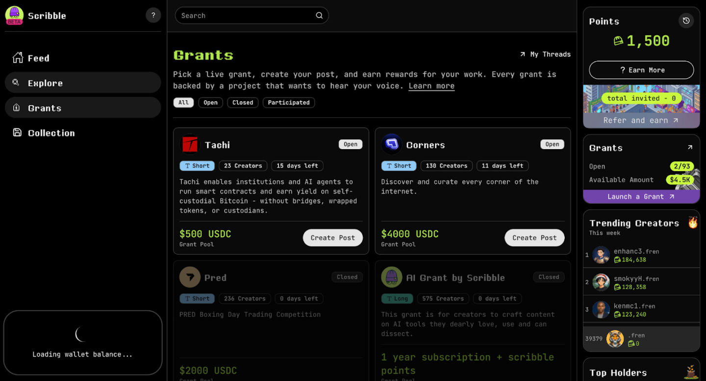 Scribble 是一个代表性例子。项目以赏金形式发布资助任务,KOL 创建并提交内容以供审核,然后获得奖励。这是一种「提交 - 审核」模式,而非实时追踪。