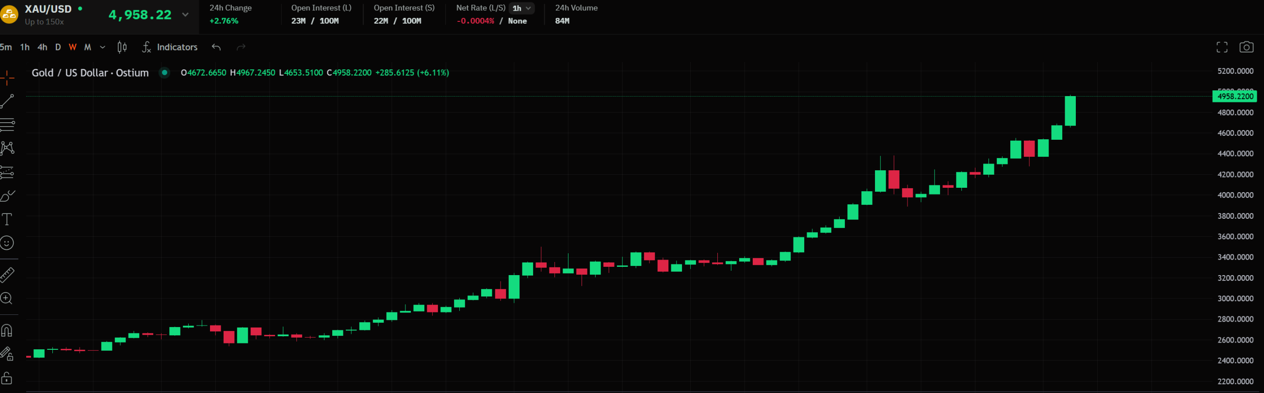 2025 年 1 月,黄金价格在 2600 美元,随后气势如虹一路上扬,截至今年 1 月 23 日,其涨幅接近 100%。