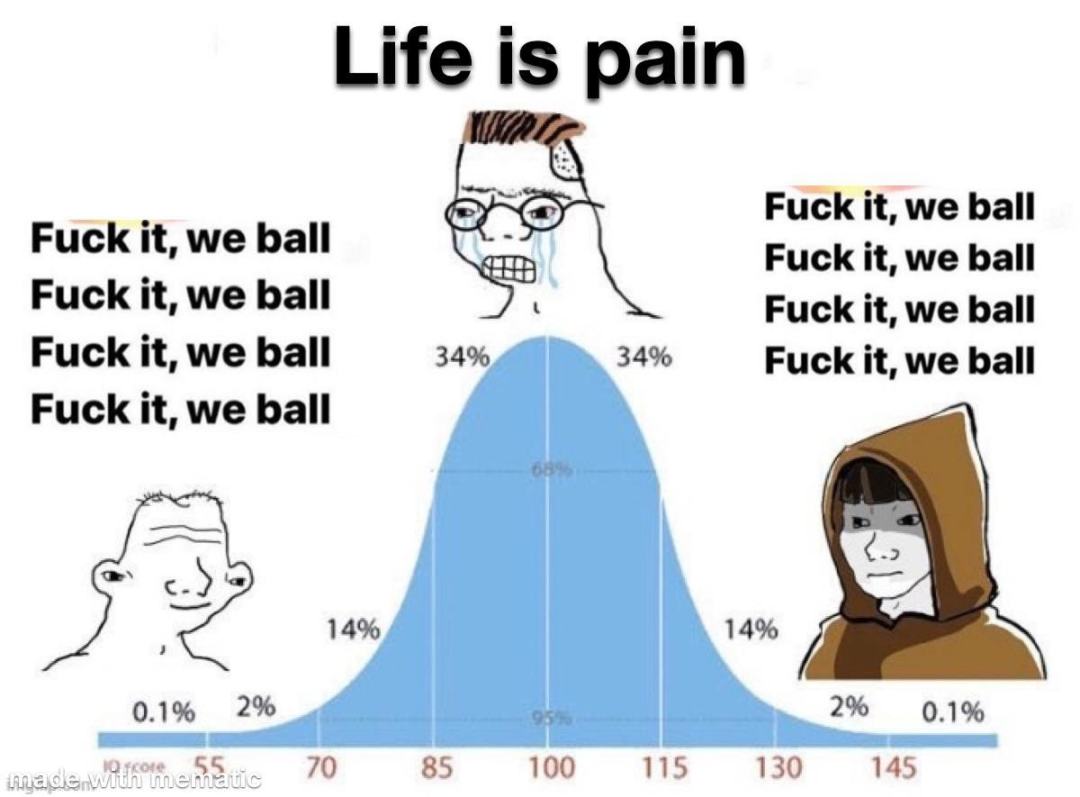 「智商钟形曲线」Meme(「生活就是痛苦」版本)