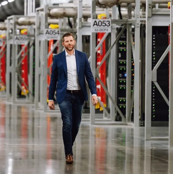 这条帖子发布前,42 岁的 Eric Trump 刚刚参观了一座长达五个足球场的大型数据中心,这是该中心 6 月下旬正式运营后,他的首次到访。该数据中心坐落于一片曾经的牧场上,毗邻成片旋转的风力涡轮机,这些涡轮机为数据中心提供高达 45% 的电力。Eric 身着牛仔裤、休闲西装和系扣衬衫,与《财富》杂志的记者和视频摄制组一同漫步在成排的服务器之间,他说:「我从这里感受到了一种极致的美感,和我以往接触的房地产项目截然不同。」
