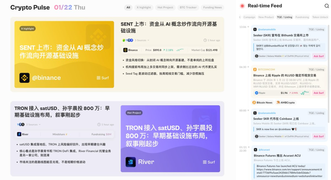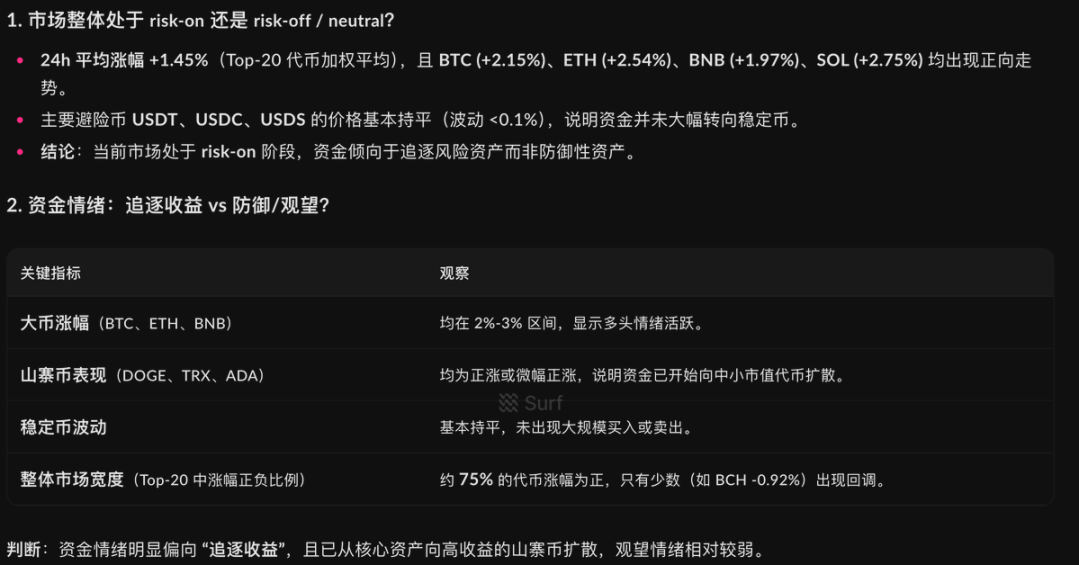 也因此,评价 Surf 的标准应该更现实,它的信息来源与口径能否说清楚、结论能否被验证,能做到这两点,它才可能成为 crypto 用户会反复使用的工具。