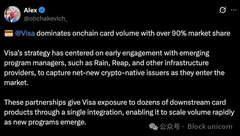 在这种情况下,Visa 早期就与中间层建立了合作关系,而 Mastercard 最初则更专注于与交易所合作。与大型发卡机构建立合作关系可以催生数十个信用卡项目,并开启一系列新产品的发布渠道。