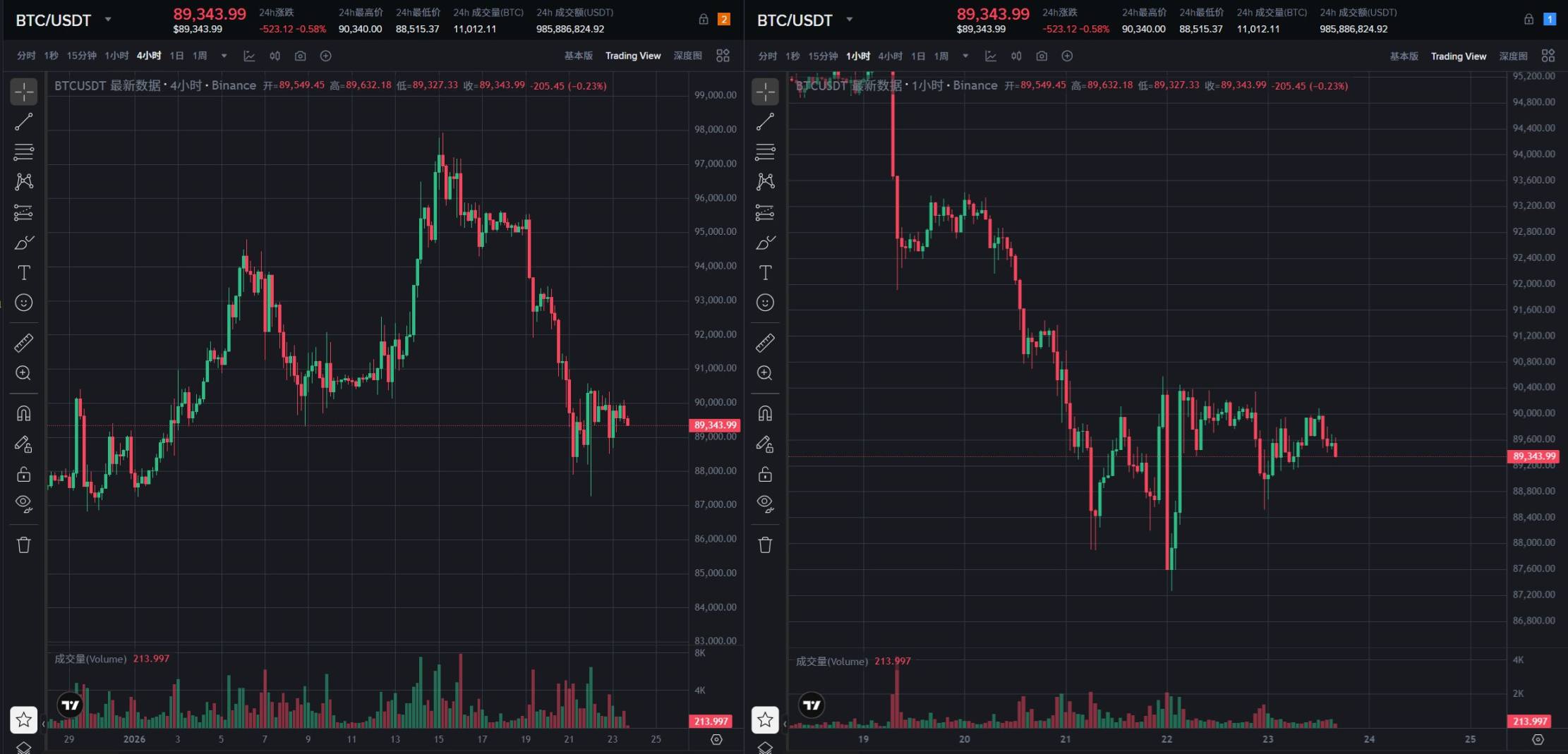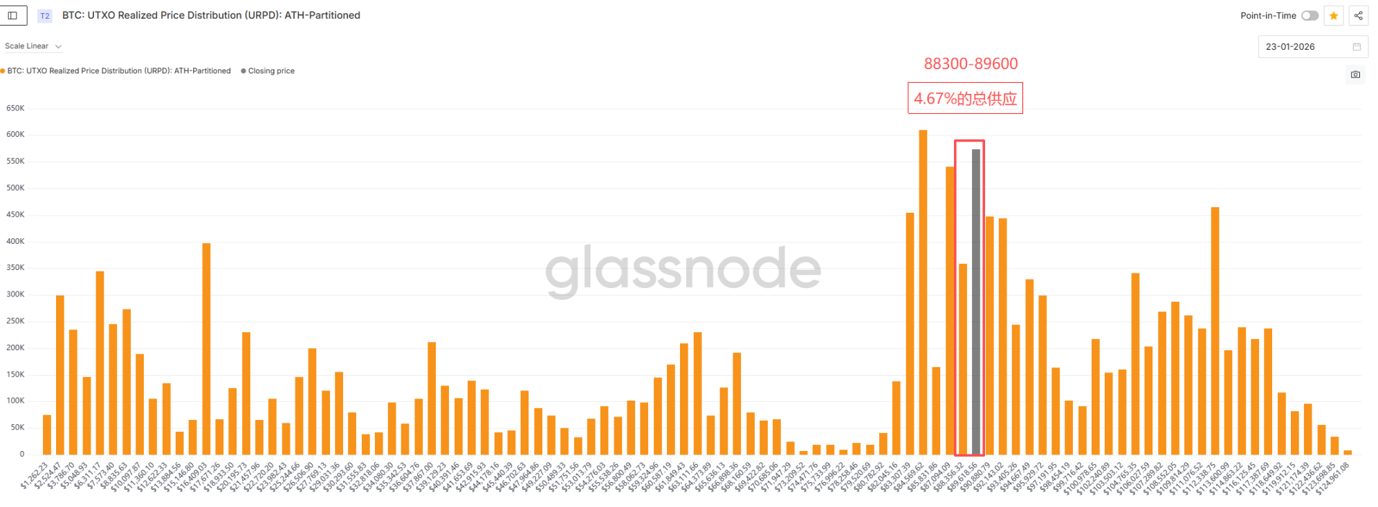 筹码分布:88300-89600 区间出现明显换手
