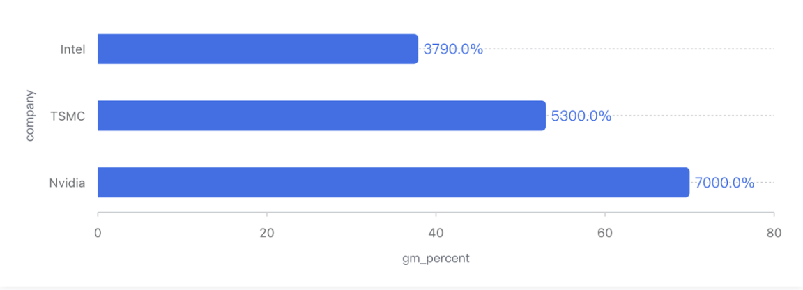 其次,毛利率虽然回升至约 38%,但这一水平在英特尔历史中依然处于极低区间。十年前,这家公司毛利率常年维持在 60% 左右,即便近年也多在 50% 上下,相比之下 TSMC (TSM.M)的毛利率仍超过 50%,英伟达更是高达 70% 以上。