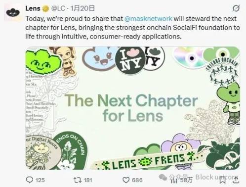 2026 年 1 月 20 日,Lens Labs 正式宣布 Mask Network 将接任 Lens 下一阶段的「管理者」角色,将项目的重心从基础设施建设转向面向消费者的产品。Mask 方面则表示,此举旨在将该协议已验证的成果转化为大众市场可用的体验。