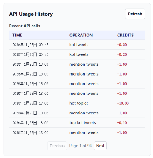 prompt 示例:「请调用 /tweet/mention_tweets 接口,搜索 ticker 为 SOL 的推文。限制时间为最近 24 小时。帮我过滤出互动量(点赞 + 转发)最高的前 5 条,看看大家对 SOL 的情绪如何。」