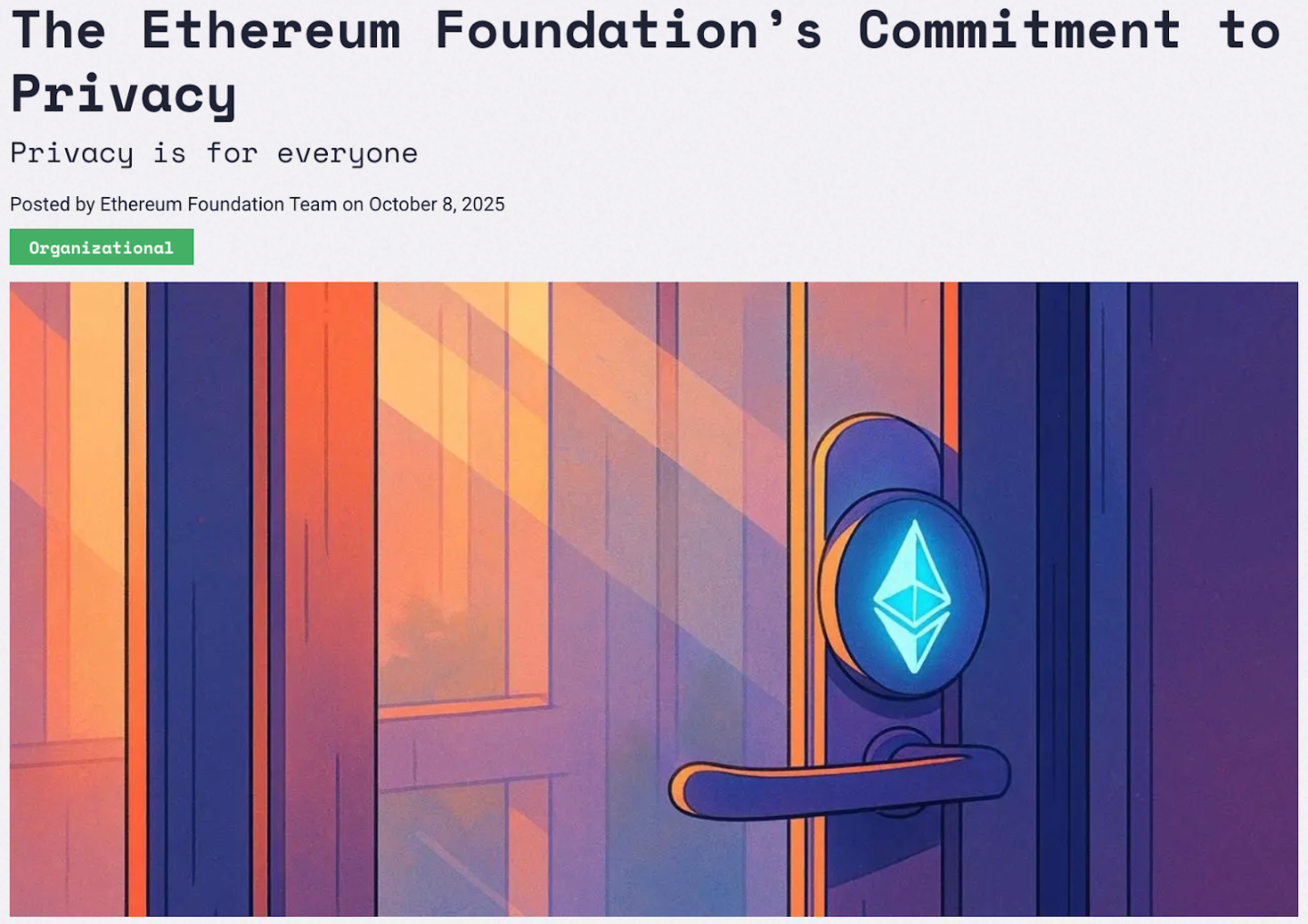 这一判断在 2025 年下半年得到了以太坊生态的系统性回应。以太坊基金会将隐私提升为生态层面的长期战略目标,明确提出隐私应当成为以太坊生态的「一流属性(first-class property)」。围绕这一目标,基金会同步推进了多项组织与路线层面的调整,包括成立隐私集群与机构隐私任务组、重组 PSE 团队,并发布面向未来数年的隐私技术路线图,将隐私工作划分为私密写入、私密读取与私密证明三类方向,分别对应交易与合约交互、链上数据访问以及数据有效性验证等关键场景。