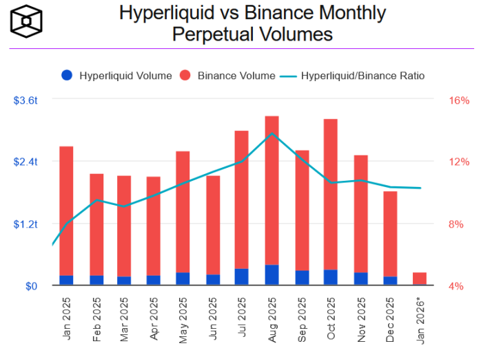 从相对结构看,Perp DEX 与 CEX 合约交易量的比值从年初的 6.34% 攀升至 11 月峰值的近 20%,而以头部 Hyperliquid 为例,其与 Binance 的月度衍生品交易量比值年内由 8% 提升至近 14%。这一系列数据表明,随着基础设施的完善与用户习惯的改变,Perp DEX 已突破流动性瓶颈,正逐步挑战传统现货 DEX,成为承接链上资金的下一代核心流量池。