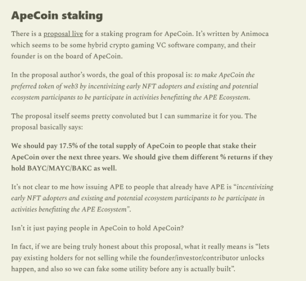 这种设计也带来了一些风险,历史上已有类似机制引发问题的先例。可参考 Cobie 文章中的案例剖析:「ApeCoin 与质押机制的失败」。