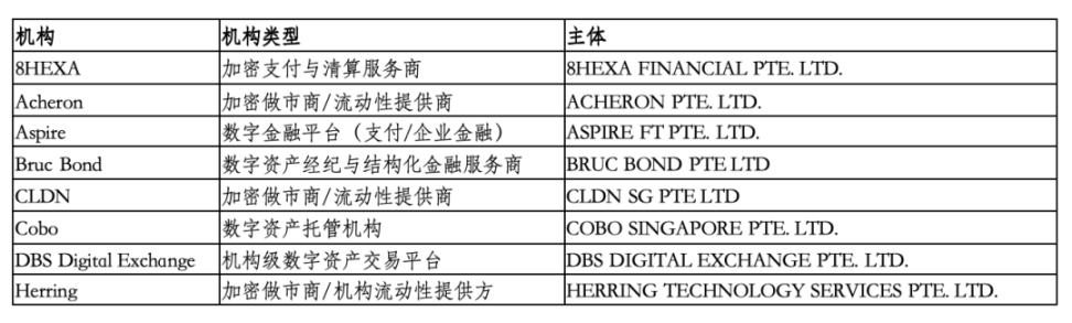 截至目前,MAS 尚未公开 DTSP 牌照的完整持牌名单,相关情况主要通过监管文件及政策说明予以体现。