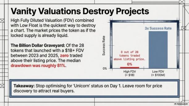 但创始人还是前赴后继,因为「10 亿美元 FDV」写在新闻稿里多好看,也让早期投资人在真正能卖之前,账面上好看。说白了,这就是个「定价幻觉」,市场会毫不留情地戳破它。