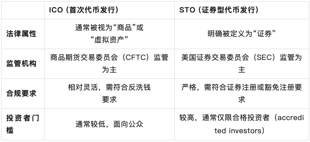 在加密资产领域,首次代币发行(Initial Coin Offering,简称 ICO)与证券型代币发行(Security Token Offering,简称 STO)是两种常见的募资方式。ICO 通常发行的是「功能型代币」(Utility Token),投资者购买代币主要用于未来访问项目平台或服务,理论上不依赖第三方管理的努力获利;而 STO 发行的是「证券型代币」,其价值通常与传统证券(如股权、债权、收益权)挂钩,投资者依赖发行方或管理人的努力获取利润。