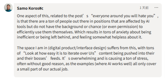 从事数字产品设计的萨莫·科罗舍茨(Samo Korošec)在 LinkedIn 上回复耶格时,表达了相似的处境。