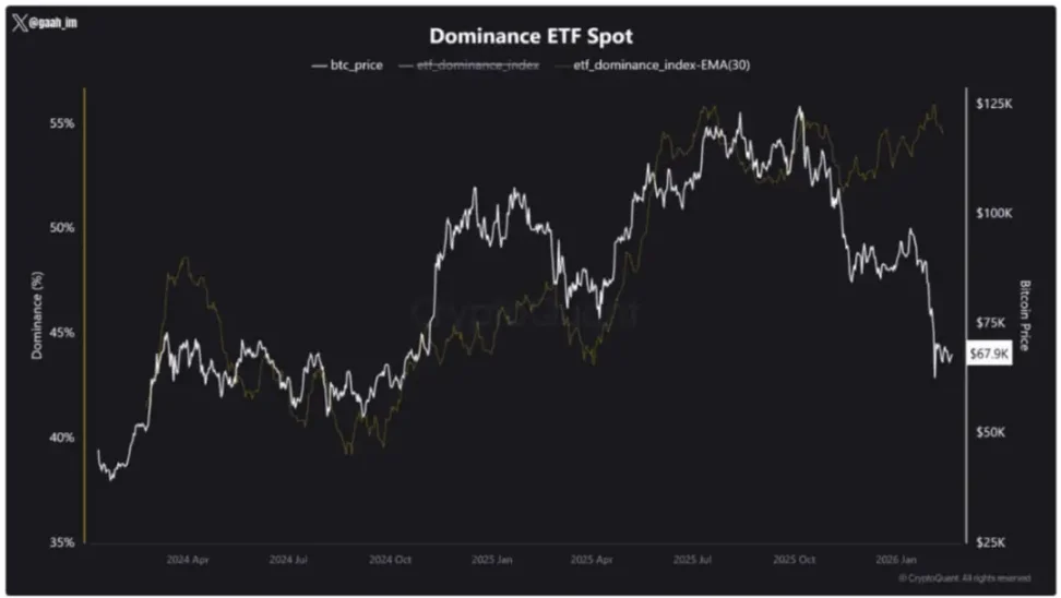 来自 CryptoQuant 的数据进一步佐证了现货比特币 ETF 为何已成为比特币价格表现不可或缺的一部分。