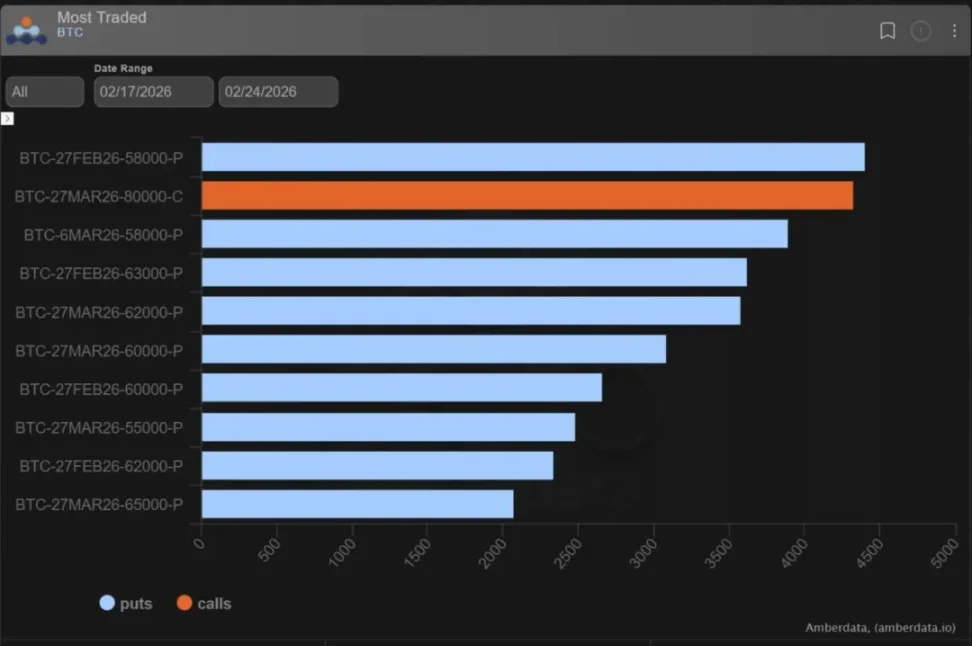 交易员们活跃于 58,000 美元的看跌期权、看跌期权价差和风险逆转策略,衍生品市场日益围绕这一价位展开,将其作为主要的下行参考。